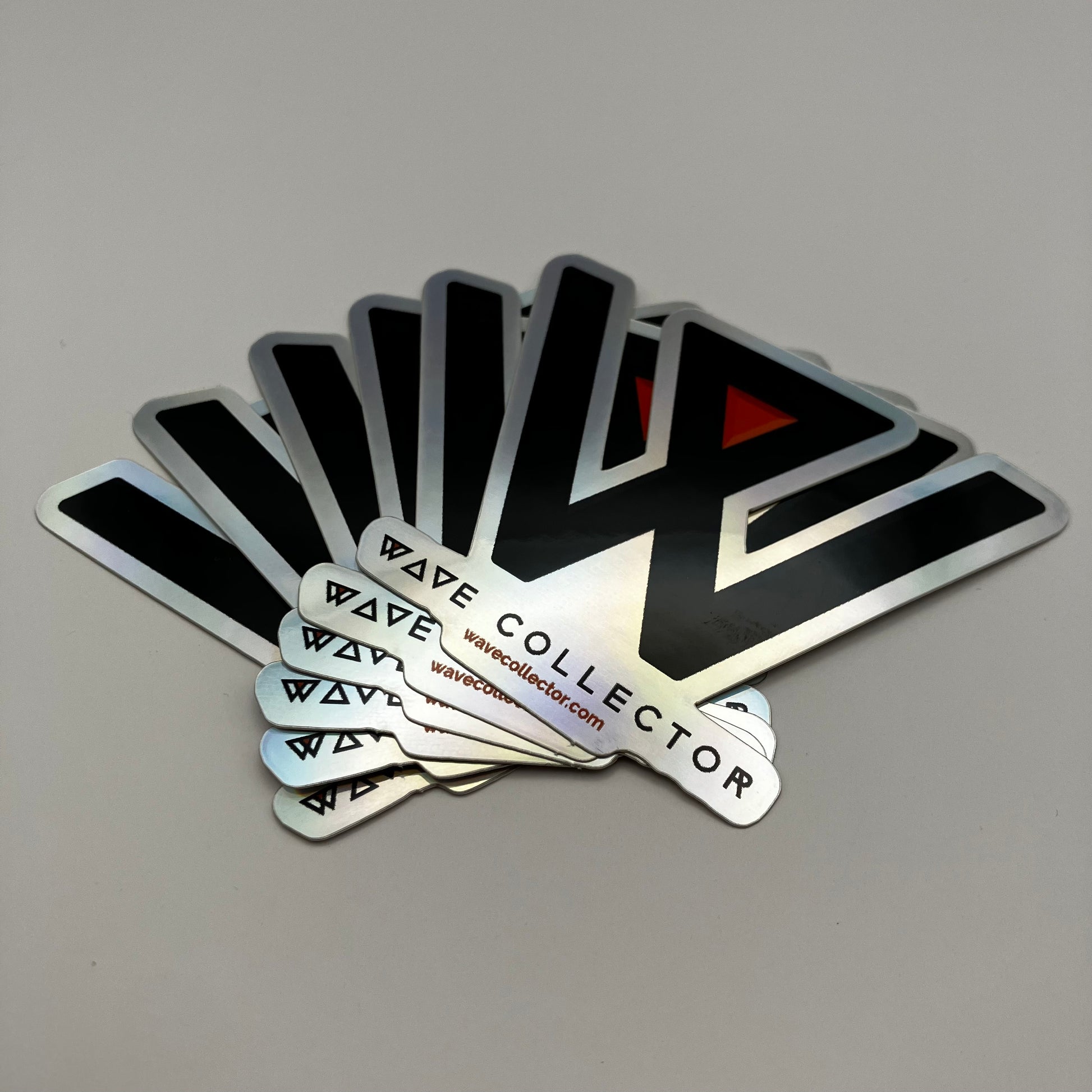 10 die cut, 3 inch Wave Collector logo stickers! These stickers are holographic! Ooh, fancy. Put 'em on stuff, give them to friends!
