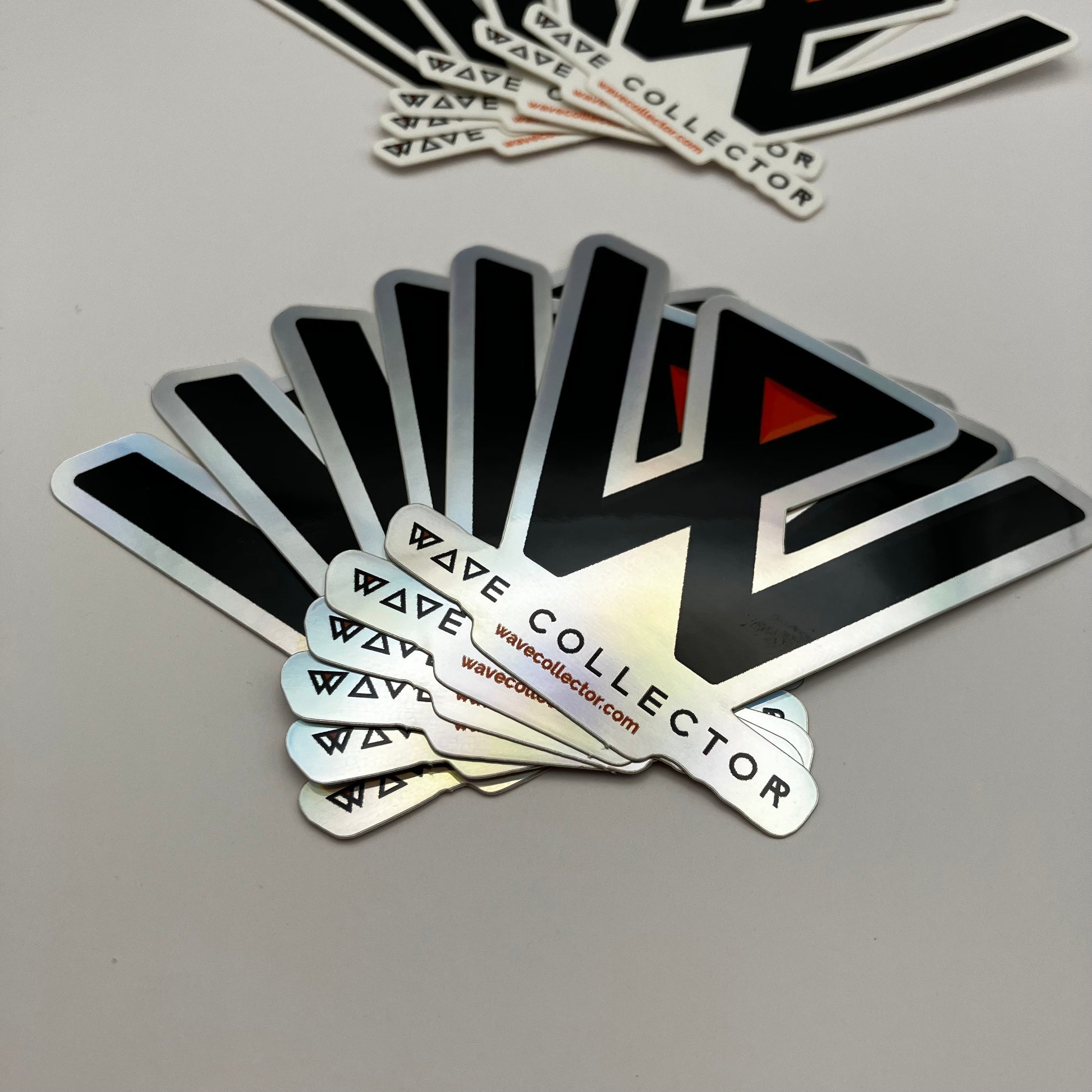 10 die cut, 3 inch Wave Collector logo stickers! This pack includes 5 white, 5 holographic stickers. Put 'em on stuff, give them to friends!
